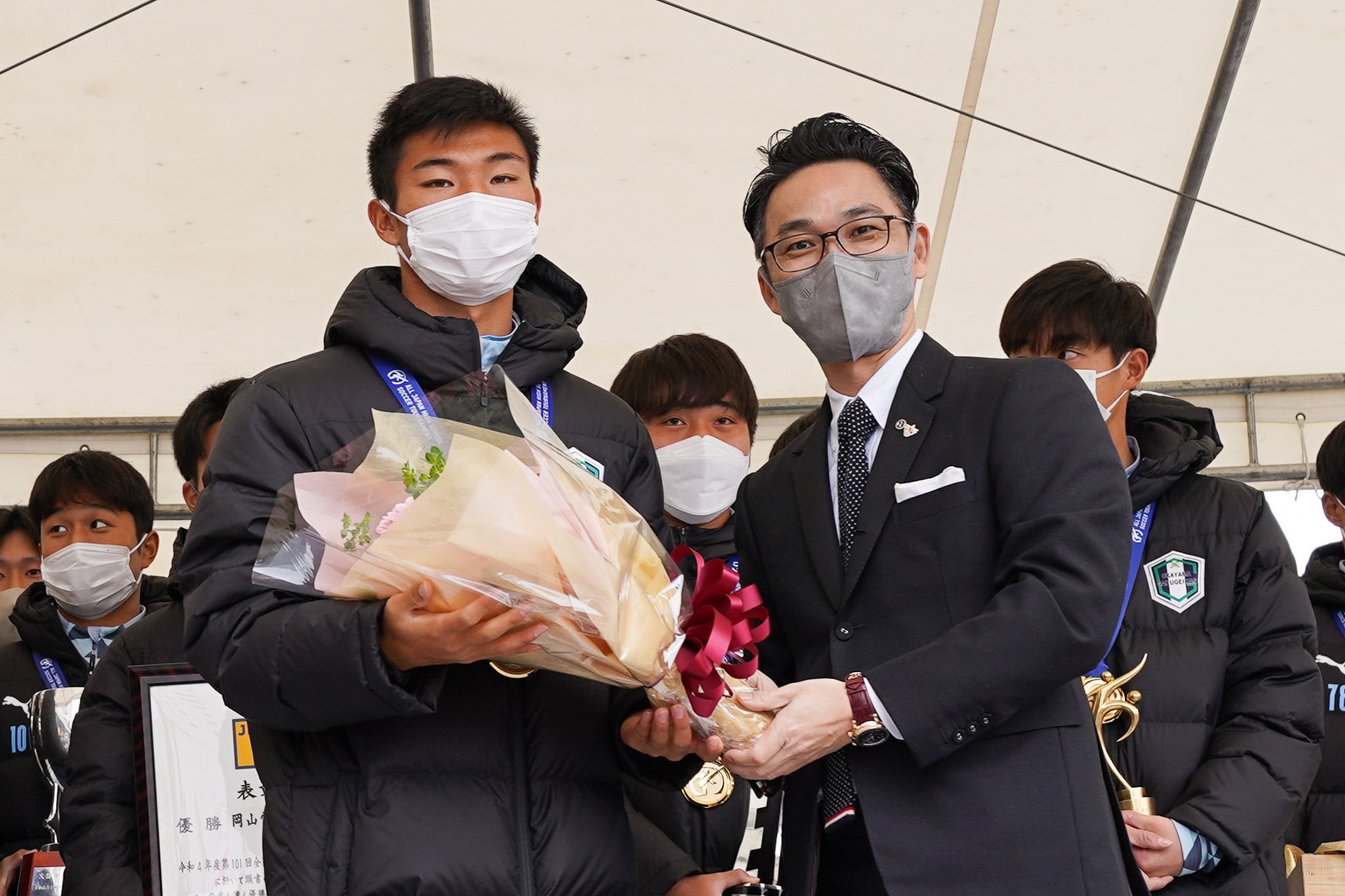 また、全体を通して一般のお客様も非常に多く来場され、学芸館高校のサッカー部の優勝報告では特に多くの方が足を止めていたのも印象的でした。