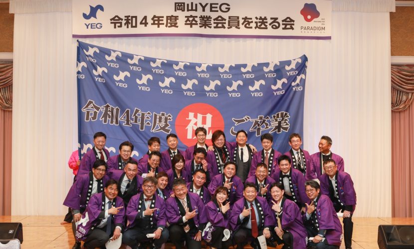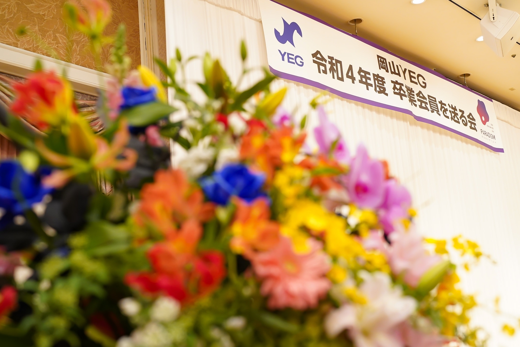 セレモニーでは卒業会員一人ひとりが各委員会で工夫を凝らして作成された呼び込み動画により登壇し、卒業証書の授与、花束贈呈を経てスピーチやプレゼンターとの掛け合いなど思い思いの形で岡山YEGでの思い出やメッセージを伝える時間となりました。