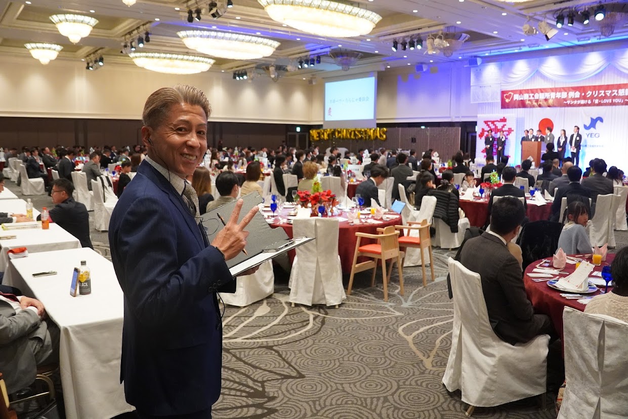 12月18日、ホテルグランヴィア岡山において12月例会を開催しました。今回は岡山YEGの活動を日頃から理解し、支えている家族を招待しての開催となり、通常例会とは異なる雰囲気でのスタートとなりました。例会の冒頭では山田会長より、日ごろの岡山YEG活動への理解について、家族へ深い感謝の意が述べられました。