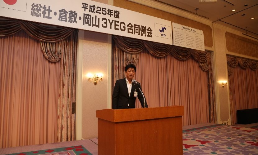 7月26日、岡山プラザホテルにて、総社・倉敷・岡山3YEG合同例会を開催した。 3YEG会長による挨拶ののち、9月に開催される中国ブロック大会のPRのためご出席された中国ブロック商工会議所連合会中村会長、ビジネス交流ブースの見学に来岡された高岡YEGからもお話をいただき、短いながらも内容の濃い例会となった。 引き続き開催された懇親会では、岩国YEGの皆様による中国ブロック大会のPR、スポーツ交流委員会による岡山シーガルズ応援アトラクション、ビジネス連携委員会によるビジネス交流ブースの紹介など内容は盛りだくさんで、会場は大変盛り上がった。