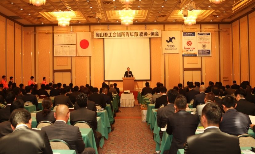 11月25日、アークホテルにて、11月例会・総会が開催された。冒頭会長挨拶では、今年度も残り4ヶ月となったが「YEGは何のために活動するのか︖」をしっかりと考え、年度の終わりには「今年はYEGでこれを学んだ」という何かをつかんで欲しい、また、いよいよ岡山駅前にイオンモール岡山がオープンするが、早めに足を運び、青年経済人として見て感じて学んで欲しい、と述べた。その後各委員会報告と新会員スピーチ等が行われた。