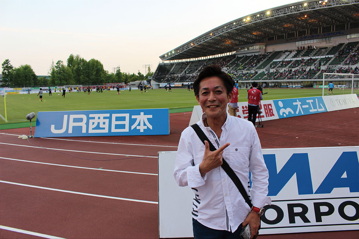 試合前にはスタジアム内を見学し、ピッチからの眺め、そしてプロ選手の迫力ある練習を間近で見ることが出来ました。対戦相手はジェフユナイテッド千葉という強豪でしたが、私達の期待通り、ホームでの勝利を見届けることができ、163名の参加者及びファジアーノ岡山ファンが一体となって盛り上がり、会員メンバーだけでなく、家族や社員の方々も含め、しっかりと交流を図り熱く楽しい観戦ツアーとなりました。