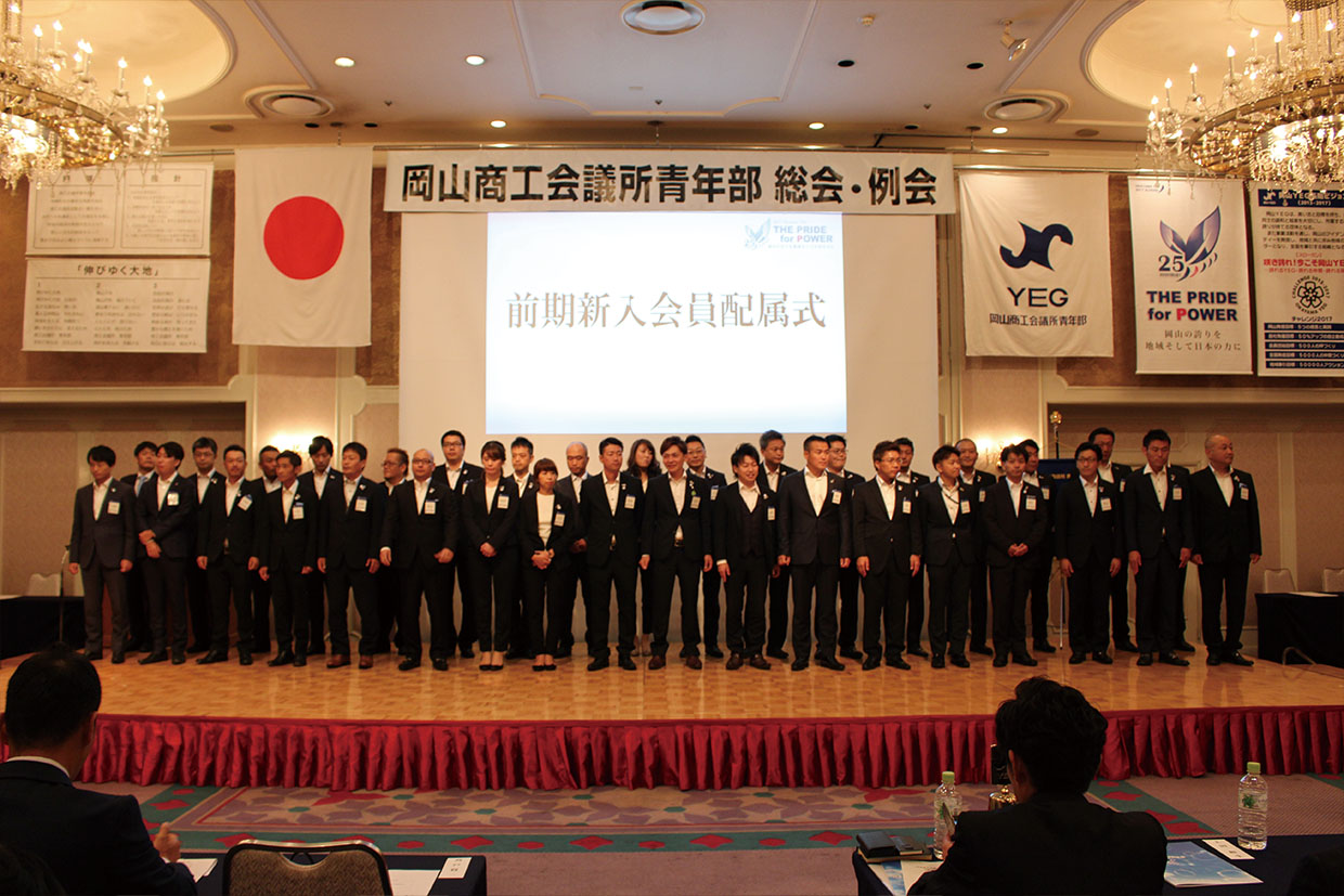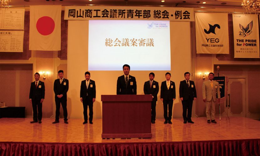 9月28日、岡山プラザホテルにて、平成29年度通常総会と9月例会を開催した。総会では、平成30年度の会長候補者として三洋エンジニアリング㈱社長の塚本晃久氏を選任し、副会長6人、専務理事1人も予定者として承認。塚本会長予定者が「情熱と誇りを胸に、活発で希望の持てる岡山YEGの未来を共に創りたい」と抱負を述べた。
