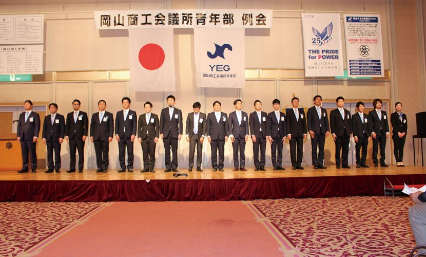 10月24日、岡山国際ホテルにて、平成29年度10月例会・懇親会を開催した。例会では、後期新入会員19人へのYEGバッジ授与式を実施。全国各地で行われているブロック大会の参加報告や、岡山YEG支援隊による九州北部豪雨で被災した福岡県朝倉市の朝倉YEGへの義援レポートなどがあった。