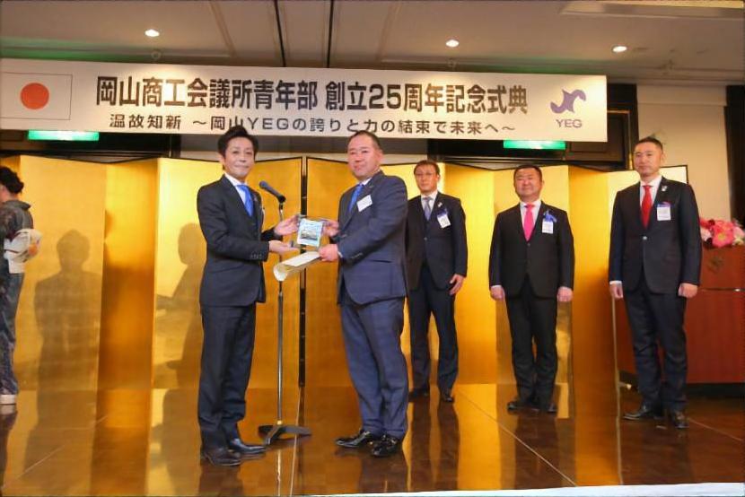 2月24日、岡山商工会議所青年部創立25周年記念式典・記念祝賀会をホテルグランヴィア岡山にて開催した。伊原木岡山県知事、大森岡山市長、岡﨑岡山商工会議所会頭をはじめとした来賓、県内外の友好YEG、岡山YEGのOB、現役メンバーなど総勢約460人が参加し四半世紀の節目を祝った。