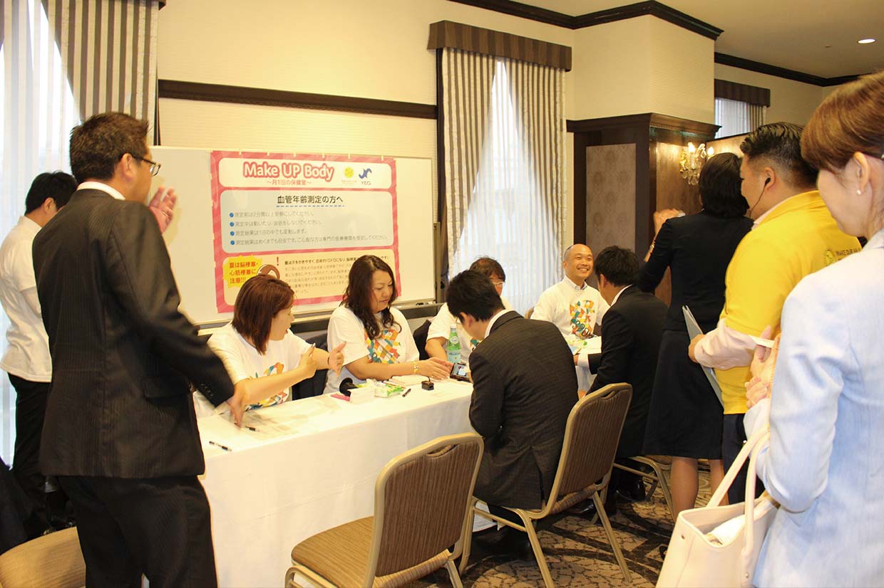 1回目は、健康に関するミニ講座の他、会場にて血管年齢と握力の測定などを行った。