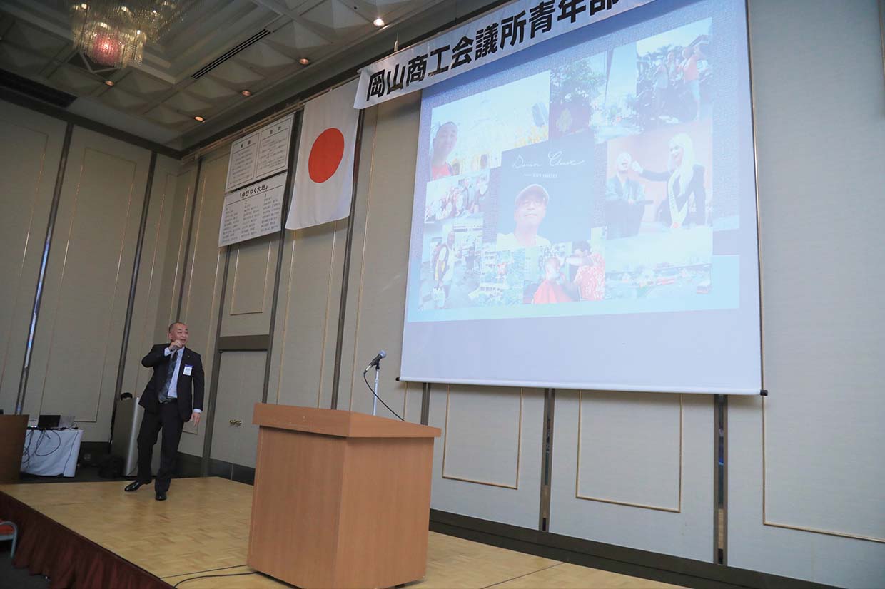 また、例会後には国際ビジネス委員会の企画として、「JETROを活用した、海外展開の第一歩」と題したセミナーを実施。日本貿易振興機構岡山貿易情報センター(JETRO)の都築佑樹氏を講師に迎え、JETROの概要と活用する方法を説明いただいた。続いて当会員の㈲馬野の馬野信吾委員が登壇し、JETROを活用した自身の海外展開についての体験を発表した。メンバーの体験談を聞くことで、国際ビジネスを身近に感じ、関心を持つ機会となった。