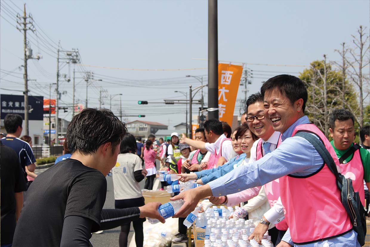 4月21日、岡山市東区西大寺地区の名所を巡るコースで「おかやま西大寺マラソン大会」が開かれ、岡山YEGから54人がボランティアスタッフとして参加し、スタート・ゴール地点でのランナーの誘導や給水・救護などを行った。大会には、3km、10kmコースを合わせて、過去最多となる4,007人のランナーがエントリー。開会式では、岡山商工会議所松田新会頭が挨拶、大森岡山市長、山下法務大臣、ゲストランナーらも市民ランナーとともに晴天の下、健脚を競った。また、「6月1日岡山市民の日」推進事業として、岡山市民の日委員会によるPR活動も行った。