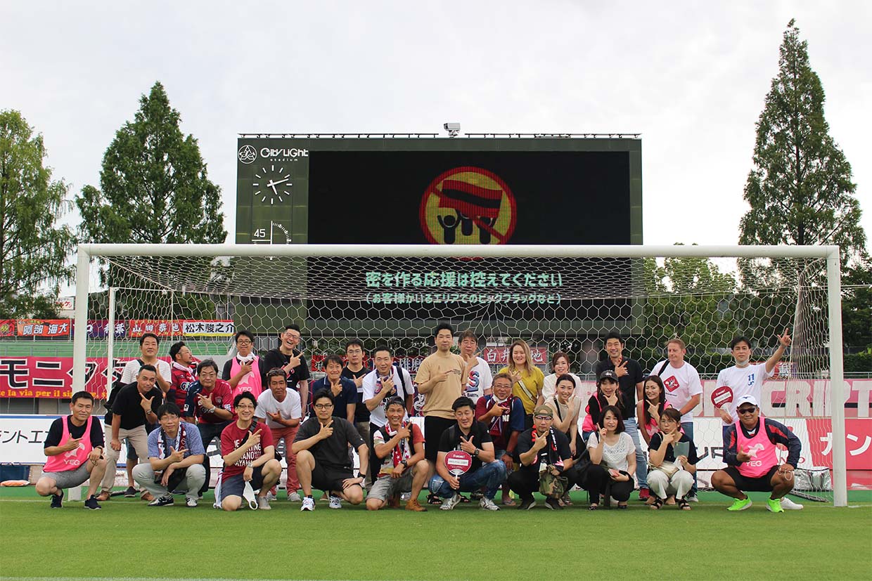 7月18日、サッカーJリーグ公式戦「ファジアーノ岡山VSザスパクサツ群馬」が岡山県総合グラウンド〝シティライトスタジアム〟で開催され、岡山YEGから60名を超える会員が観戦した。今年度スローガンの通り、コロナ禍においても、会員間の交流・地域スポーツの発展に貢献するために、ウィズコロナでも安全に実施できるよう対策を講じて実施した。